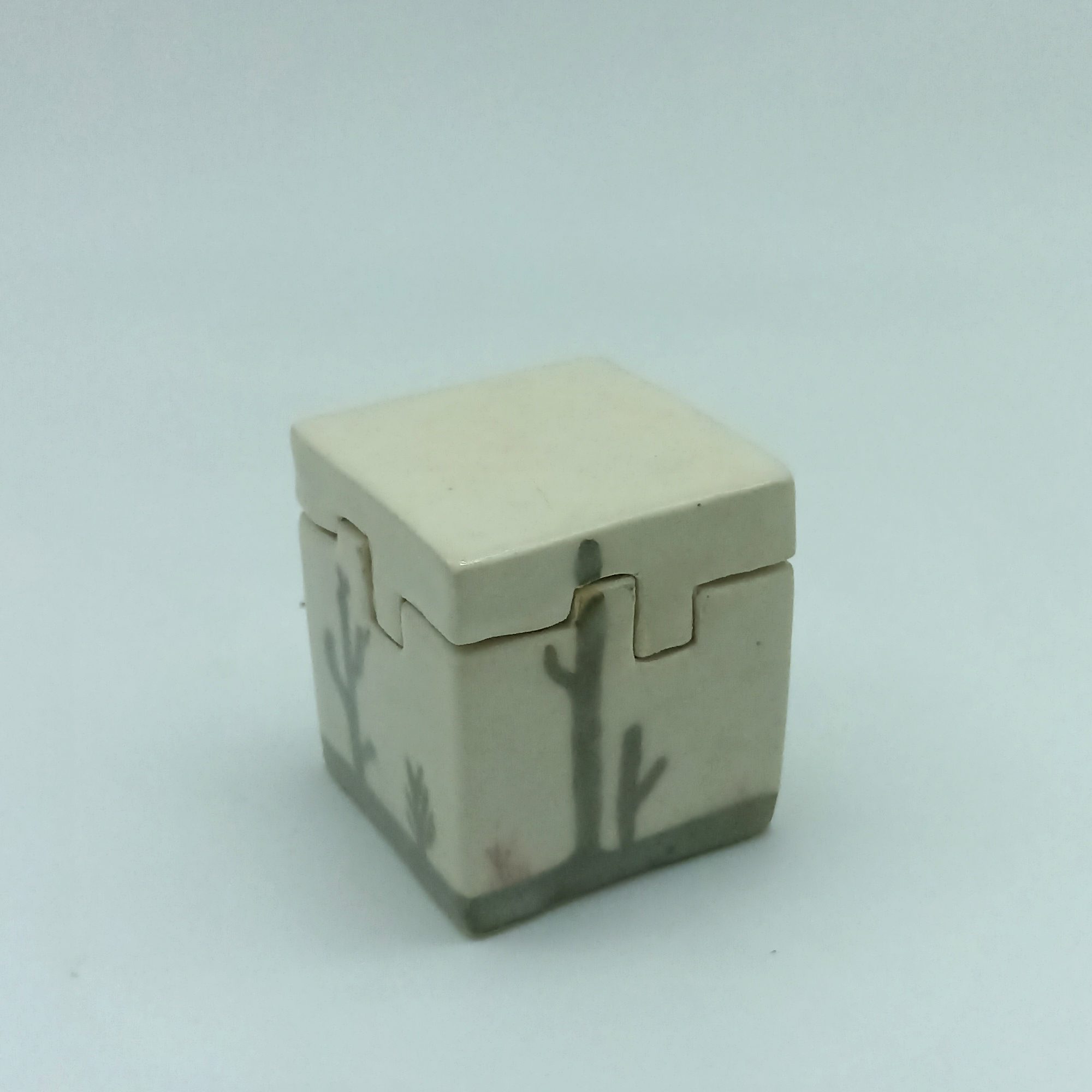 Caja modelada a mano con ilustración de cactus