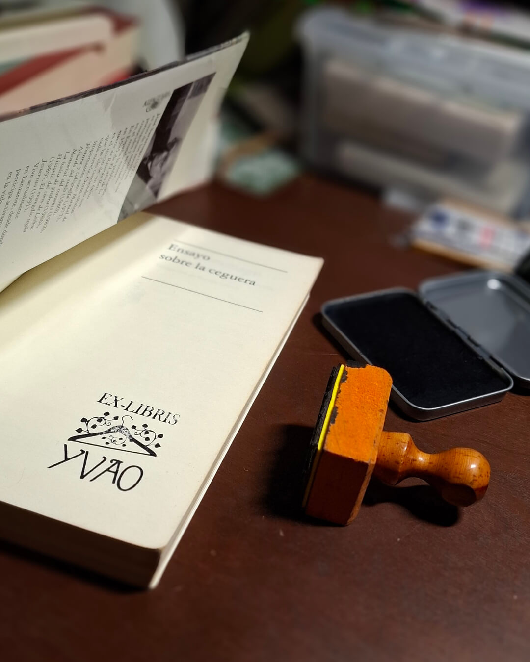 Un ex libris es una ilustración pequeña que se usaba desde el siglo XVI como la manera de marcar o indicar la propiedad de los libros, ya sea de una biblioteca o una persona en particular. Eran elaborados con grabados de madera o metal y pegados directamente en las primeras páginas de los libros. Recuperemos esta tradición con el diseño personalizado y elaboración de ex libris en sello de goma con mango de madera de hasta 5x5cm (no incluye cojín, ni tinta).